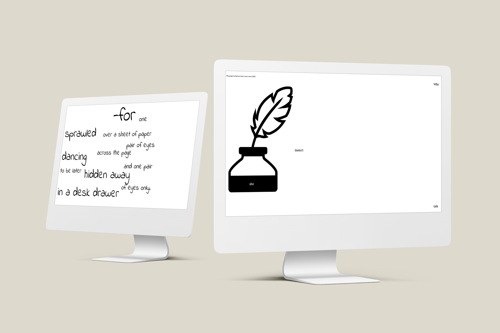 Following the “choose-your-own-adventure” format, this webpage is coded to provide the audience with an engaging experience to choose from a variety of different “paths.” Each link selected is then tied to new varied links to follow, some returning to previous points, others propelling them forward. The text itself is the combination of three pieces: an original poem about discovering personal strength, a personal narrative exploring self-doubt and anxiety, and a scientific article discussing stage fright and potential means to conquer it. Use of a limited color pallet, combined with texts and images, serve to maintain harmony and limit distraction from the piece’s meaning. Some of the links are hidden to encourage the user to absorb the symbolic relationship between the images and the text itself, ultimately allowing the user to create their own story from the piece.